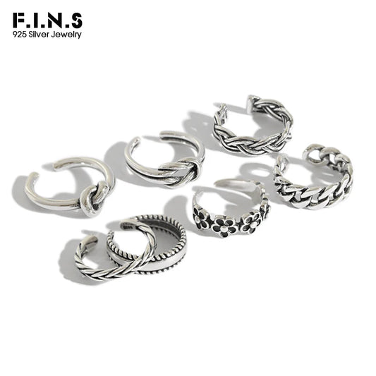 F.I.N.S 925 Sterling Silver Woman Fashion Rings Small Size Knuckle Ring Multi Styles Adjustable Rings Toe Beach Foot Jewelry